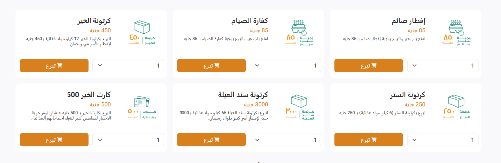 كما تتيح 3 وجبات يمكنك التبرع بها لإفطار صائم تبدأ من 55 جنيهًا وحتى 75 جنيهًا للوجبة الواحدة.