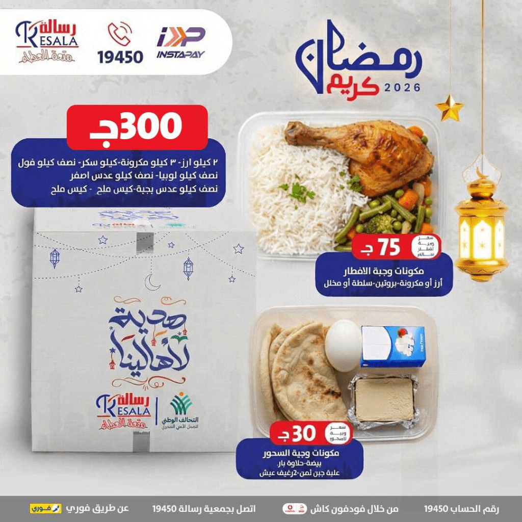 فيما توفر جمعية رسالة كرتونة رمضان بـ300 جنيه وتحتوي على 3 كيلو أرز و3 كيلو مكرونة ونصف فول.