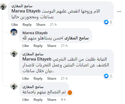 وطلبت النيابة العامة تقرير الطب الشرعي للكشف عن إصابات البنتين وعمل التحريات اللازمة، لكن بعد ساعات بس من بداية التحقيق، انتشر خبر إن العم والأم طلعوا من النيابة بعد ما تم الصلح بينهم وبين البنات.