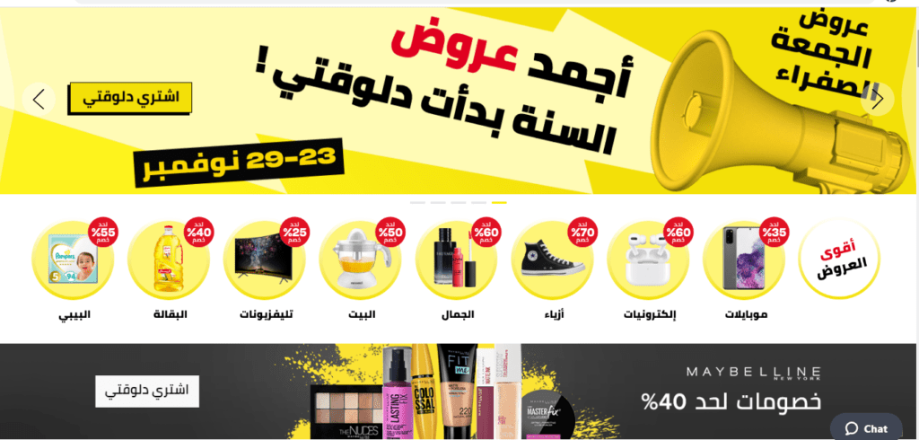 من 23 لـ 29 نوفمبر، نون بيقدم عروض مختلفة وخصومات لحد 70%، وخصومات 40% على منتجات Maybelline، وغيرها كتير تقدروا تشوفوه على موقعهم، بمناسبة “الجمعة الصفراء” حسب لون الموقع كمان.