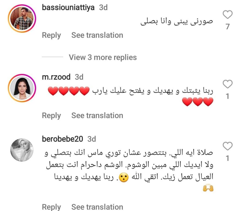في النهاية، ناس قالت ونصحت اللي بيحكموا على الصور دي، وقالوا إن علاقة الإنسان بربنا ماينفعش تكون محل تنظير مزايدة أو حكم من الناس، سواء الشخص قرر يجاهر بعبادته أو لأ، حابب يظهرها أو لأ، وماينفعش حد يقرر مين على الطريق الصحيح ومين لأ، أو مين أحسن من مين.