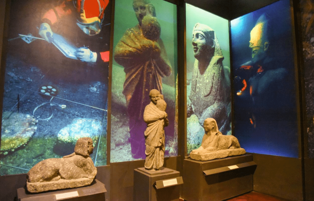 المعرض يضم 86 قطعة أثرية نادرة، تكشف أسرار المدن الغارقة بالإسكندرية مثل “كانوب” و”هيراكليون” بخليج أبي قير.