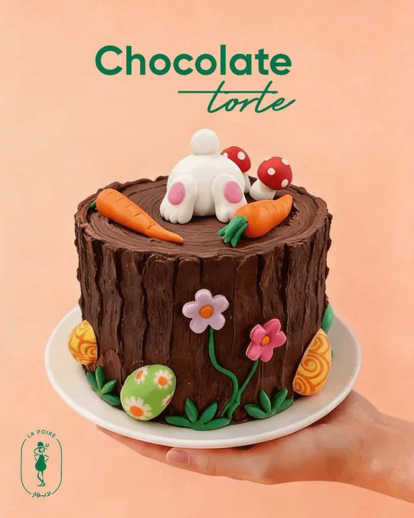 حيث تُزين بالشوكولاتة على هيئة بيض ملون أو فراشات إلى جانب حلويات خفيفة تعتمد على الفواكه الطازجة والنكهات المنعشة.