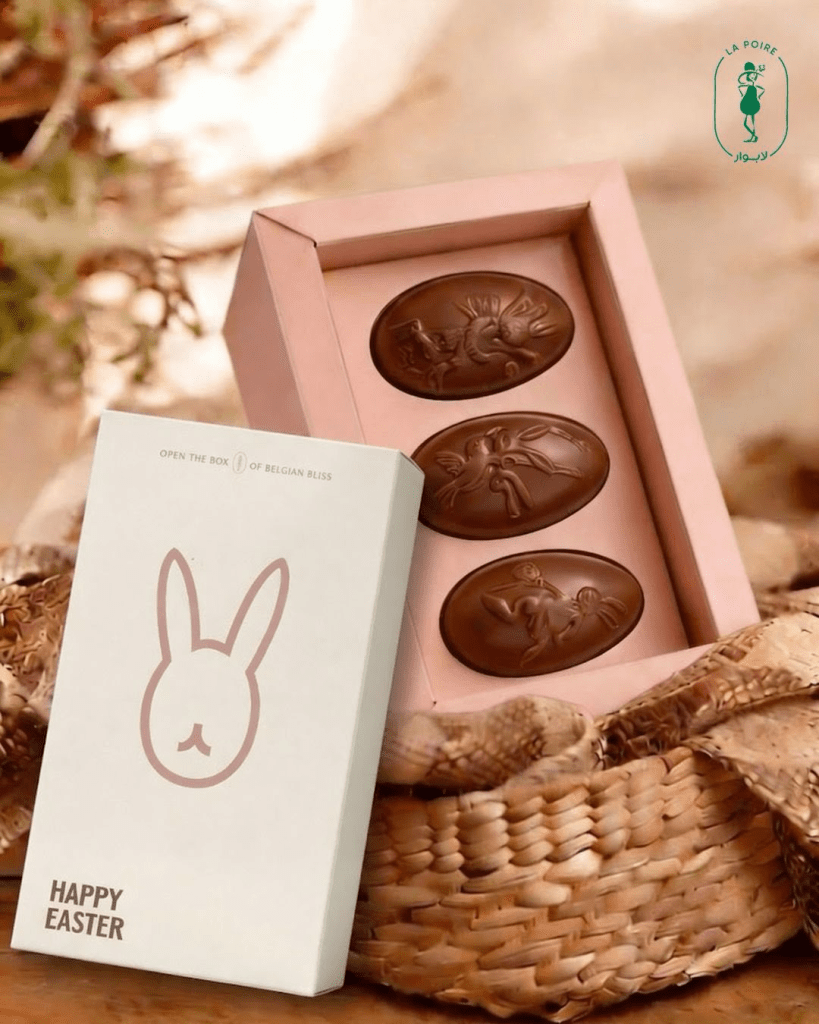 فيما يتميز لابوار LaPoireEgypt بتقديم مجموعة ضخمة من بيضات شم النسيم المغطاة بالشوكولاتة في علب مميزة بألوان الزهور.
