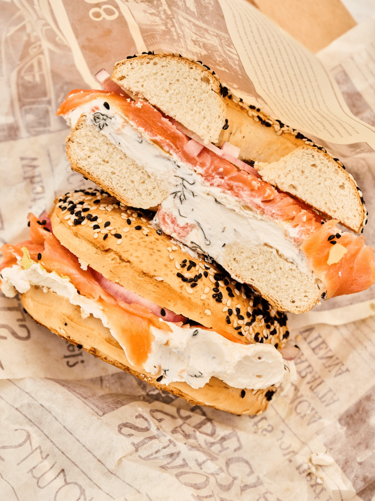 بينما في الأكلات يقدم سيموندس لمحبي الأسماك سالمون بيجل على طريقة نيويورك المصنوع من طبقات سالمون مدخن وكريمة تشيز.