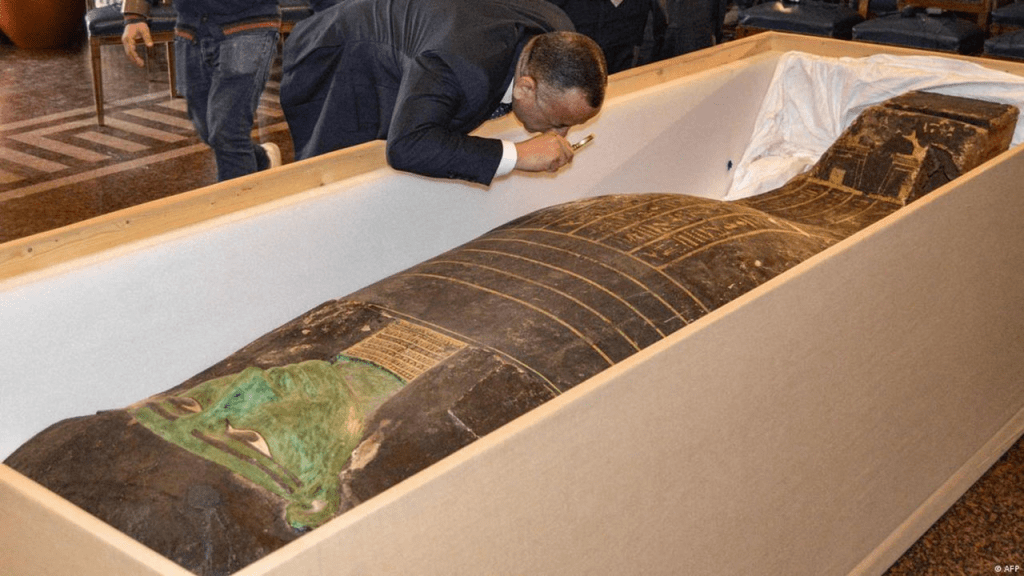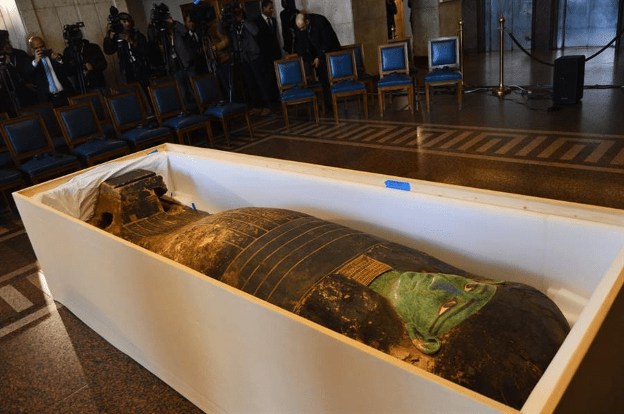 في الساعات اللي فاتت دبلوماسيين أمريكيين سلموا التابوت الأخضر للسلطات المصرية في حفل رسمي حضره وزير الخارجية المصري سامح شكري، ووزير السياحة والآثار أحمد عيسى، وقال القائم بالأعمال الأمريكي في مصر، دانيال روبنشتاين: “هذا اليوم رمزي في تاريخ التعاون الطويل بين الولايات المتحدة ومصر، في مجال حماية الآثار والحفاظ على الإرث الثقافي”، وأكد الدكتور شعبان عبد الجواد، مدير إدارة الآثار المستردة إن استعادة التابوت الأخضر بداية لرجوع كل آثار مصر اللي اتهربت.