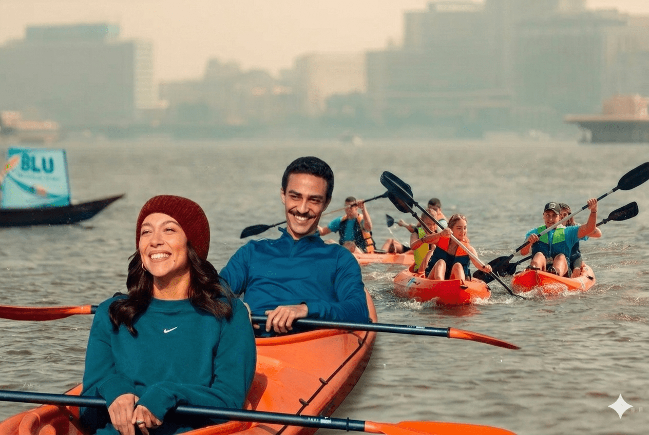 كل مجداف تحركه يمنحك شعورًا بالحرية والمغامرة، وسط نسيم القاهرة وألوان الشمس المتلألئة على سطح المياه الزرقاء.