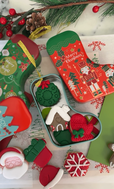 ويعرض صناديق الزينة التي تشمل ست قطع كوكيز بثلاثة تصميمات مناسبة للتعليق على شجرة الكريسماس، ويقدم أيضا برج كوكيز الكريسماس مع أربع مجموعات تزيين منزلية.
