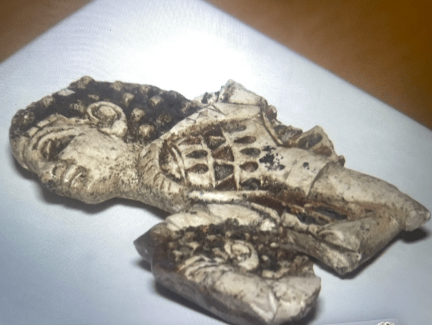 وبتظهر القطعة العاجية مجسم لأبو الهول، والمجسم مُزين، وكان تم عرض القطعة المسروقة في متحف كارلوس في جامعة إيموري في أتلانتا الأمريكية.
