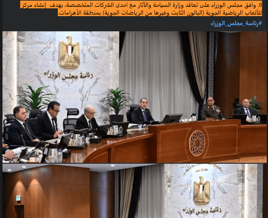 وذلك تزامنًا مع قرار مجلس الوزراء بإنشاء مركز للرياضات الجوية في الأهرامات، ليقدم أنشطة متنوعة تشمل القفز بالمظلات، والطيران الشراعي.