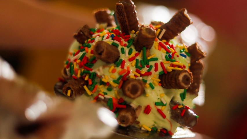 ابتكر صاحب محل للحلويات في منطقة الجيزة أيس كريم جديد على شكل فيروس الكورونا، والأيس كريم ده بيتقدم للزبائن في شكل مستدير ومتاح بألوان وأطعمة مختلفة، ومتزين بأعواد من الشيكولاتة، والبسكوت، وقطع السكر الملونة، والأعواد دي بتدي شكل زي الأشكواك اللي بتغطي الطبقة الخارجية للفيروس في صورته المجهرية.