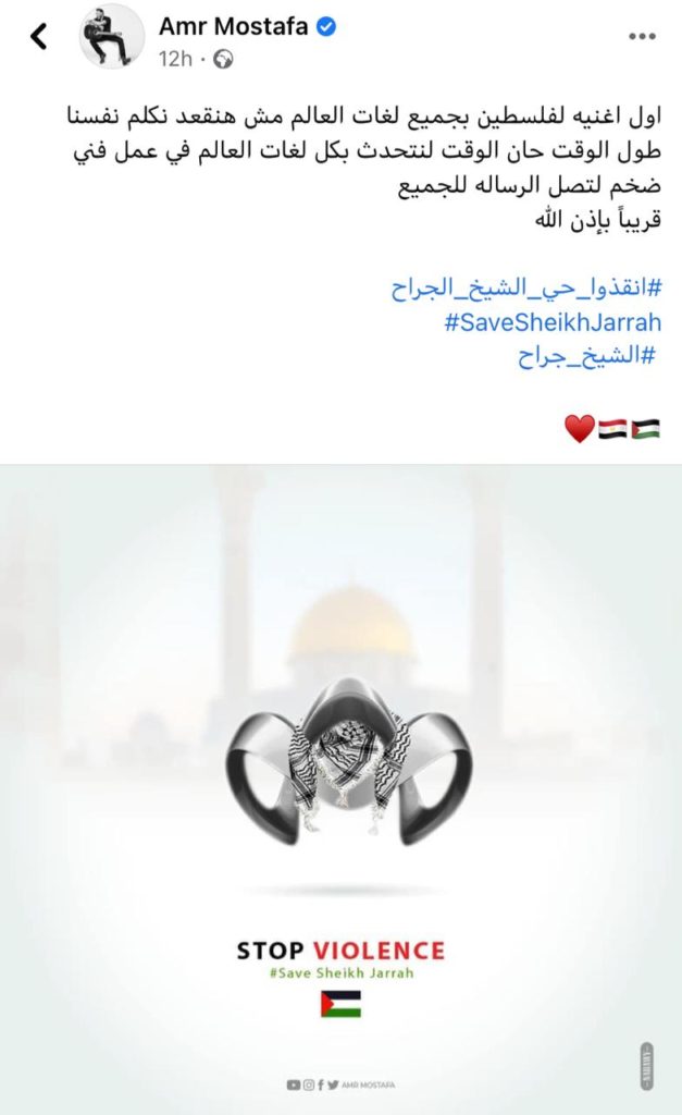 عمرو مصطفى كان من الفنانين اللي قرر يستخدم فنه في توصيل رسالة واضحة للعالم كله وإبراز موقفنا كعرب تجاه القضية الفلسطينية وتمسكنا بدعم الفلسطينيين مهما طالت السنين. من المنتظر إننا نسمع أغنية بتدعم فلسطين “بكل اللهجات” قريبًا.