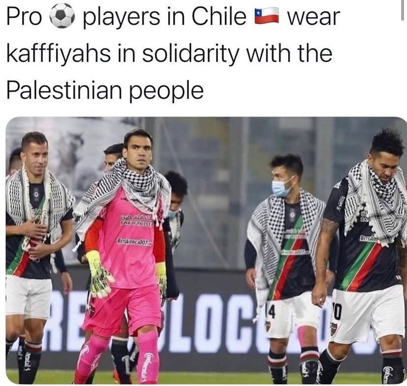 في لافتة جميلة وإنسانية، خلال مبارة كرة القدم، أظهر لاعبي نادي بالستينو الأسباني تضامنهم مع الفلسطينيين، بارتدائهم كوفيات اللي معروف بلبسها الفلسطينيين.