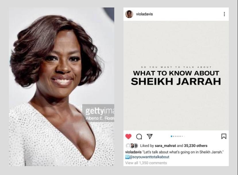 الممثلة والمنتجة الأمريكية فيولا ديفييس نشرت على حسابها بانستجرام منشور بيوضح بشاعة اللي بيحصل للشعب الفلسطيني على إيد الجيش الإسرائيلي، علشان تعرف العالم كله حقيقية جيش الاحتلال.