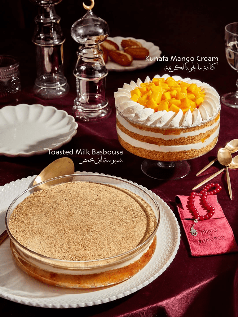 ابتكر DUKES وعاء بسبوسة الحليب المحمص بنكهة غنية وفريدة، مما يجعله خياراً مثالياً لمن يبحث عن الفخامة ضمن ابتكارات البسبوسة في حلويات رمضان 2026.