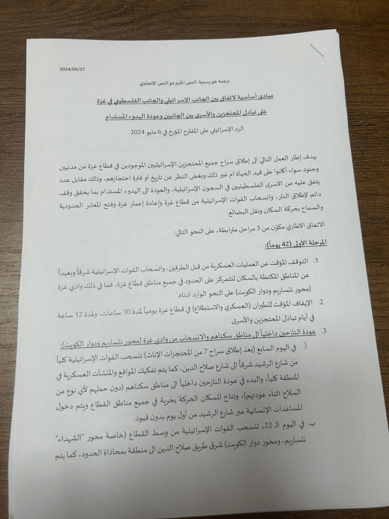 هذا التوقف يشكل أساسًا لبدء عملية تبادل جميع المحتجزين بين إسرائيل وحركة “حماس”.