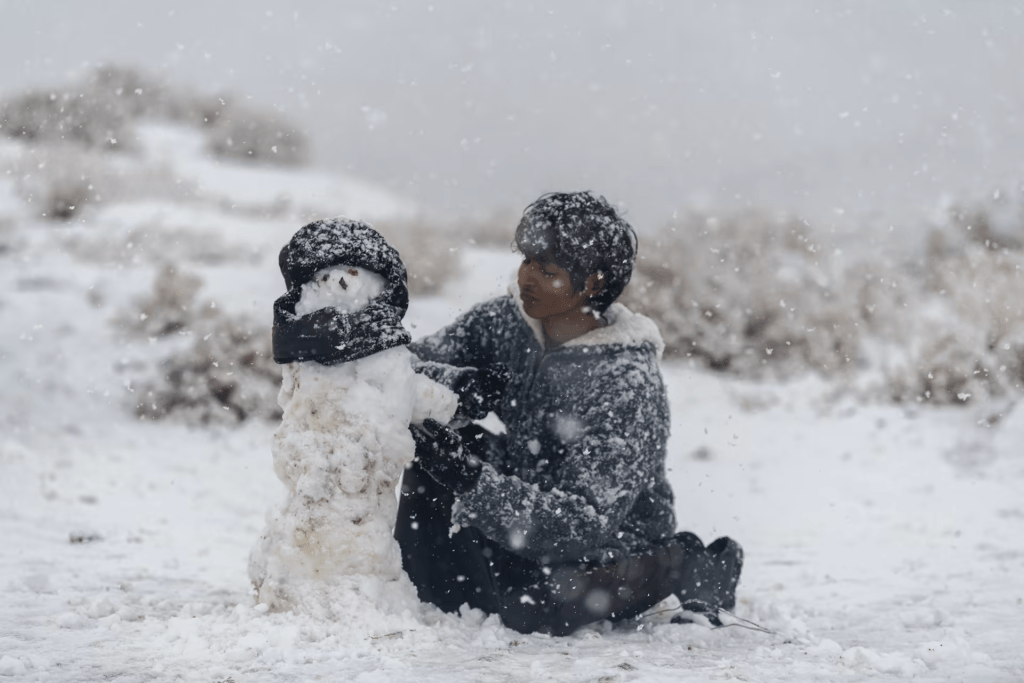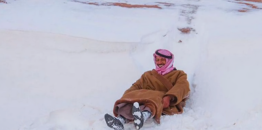 وبالمثل، تشهد مدينة رفحاء الحدودية هطولات ثلجية كثيفة، مما يمنح العائلات فرصة نادرة للاستمتاع.