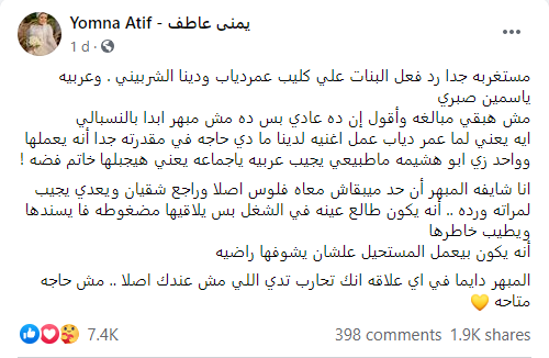 وواحدة من أكتر البوستات الجارحة، كانت اللي انتشرت مؤخرًا بعد فرح خضره مصطفي خاطر وأوس أوس فنانين مسرح “تياترو مصر”. والغريبه إن الإتنين مش هما اللي أخدوا النقض بشكل مباشر على طلتهم في الفرح، ولكن زوجاتهم.