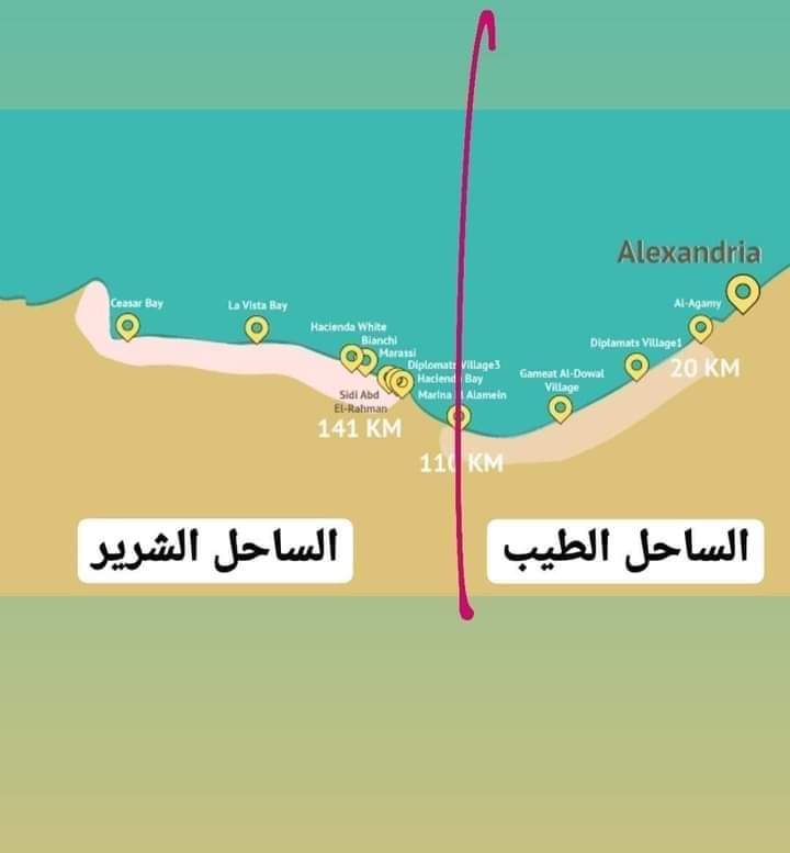 الساحل الطيب من وجهة نظرهم هو الساحل القديم، مارينا ومراقيا والقرى القديمة اللي الناس واخدة شاليهات فيها من زمان.. أما الساحل الشرير هو الأماكن الجديدة واللي غالبًا أسعارها بتبقى خرافية، وكل صيف تقريبًا بيكون في افتتاح لأماكن جديدة، واللي بتاخد الاهتمام علشان دايمًا الناس بتحب تجرب.