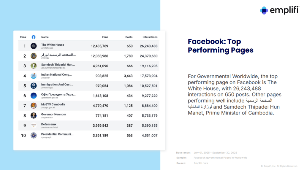 حقق الحساب المركز الثاني عالميًا بعد صفحة البيت الأبيض مباشرة، متفوقًا على جهات حكومية بارزة مثل رئيس وزراء كمبوديا ووكالة الجمارك الأمريكية.