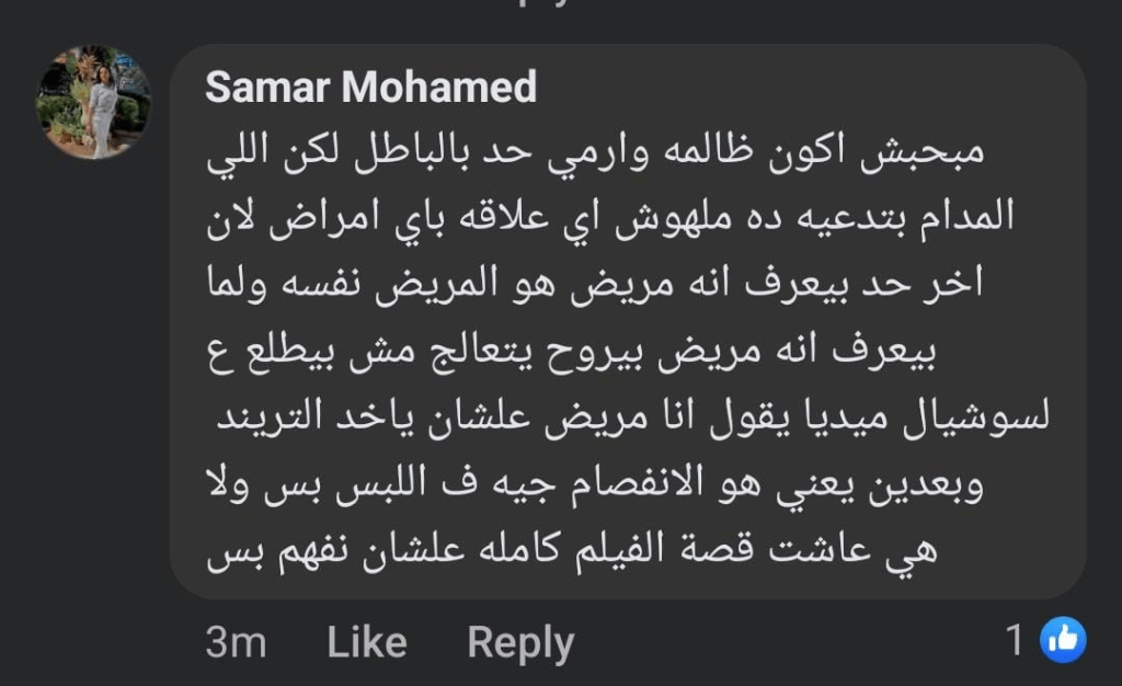 وانقسم الجمهور بين متعاطف يرى أنها بحاجة إلى دعم نفسي وعلاج، وآخرين يشككون في حقيقة تصريحاتها، معتبرين أنها قد تكون مجرد محاولة لجذب الانتباه.