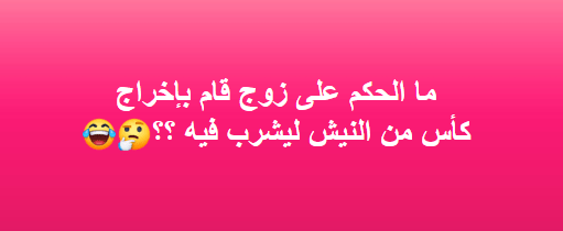 - لو الزوج فكر وشاور عقله يطلع كوباية من النيش علشان يشرب فيها شاي مرة من نفسه، هو اللي هيبقى المسؤول الأول والأخير عن أي تبعات ممكن تحصل. وماتنساش إنك ماضي على القايمة، يعني لو حاجة حصل في الكوباية دي خربوش صغير لا يتعدى الاتنين ملي، هتدفع تمنه.