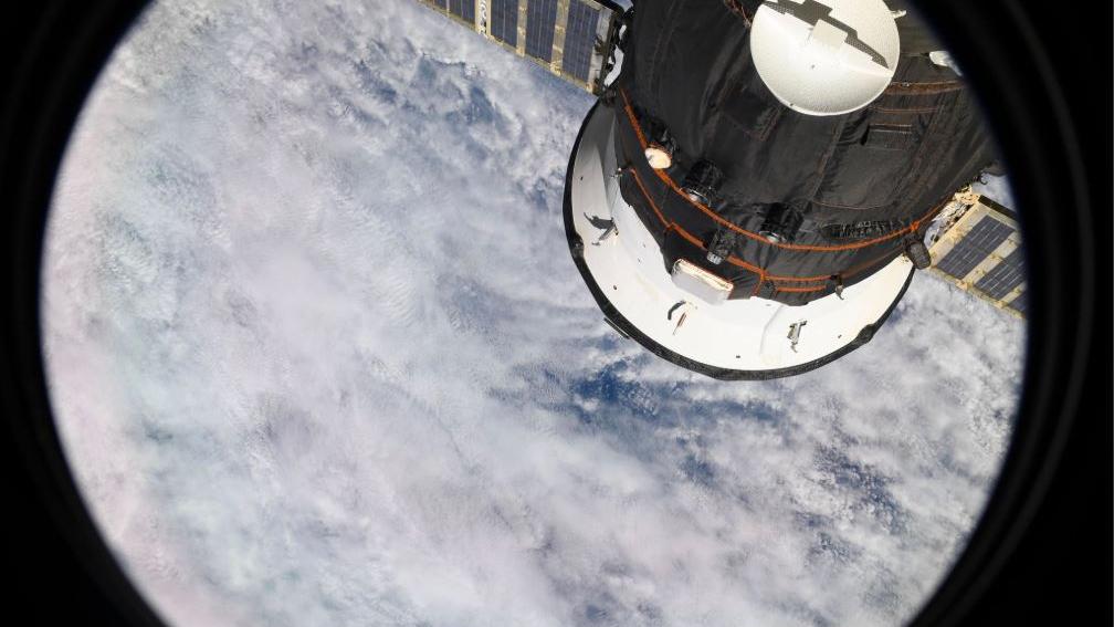 في الخلفية تقدر تشوف السُحُب البيضاء المتكاثفة واللي مغطية شكل الكوكب من بره في منظر يخطف الأنفاس! “رؤية دولة الإمارات من الأعلى كان أجمل شيء أنا شفته في حياتي. أتمنى كل الإماراتيين يقدروا في يوم يشوفوا نفس المنظر دا من الفضاء” كانت كلمات المنصوري بعد الهبوط للأرض.