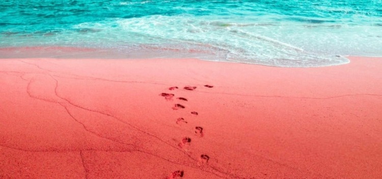 منظر الشاطئ على الجزيرة دي ساحر، في ناس كانت بتخاف منه أو بتستغربه لإن شكله دموي، ولكن الأكيد إن منظره بيدل على عجائب الطبيعة، اللي قادرة تعمل أي حاجة وتكسر أي حاجة ثابتة زيّ في الحالة دي لون مياه البحر والرمل.