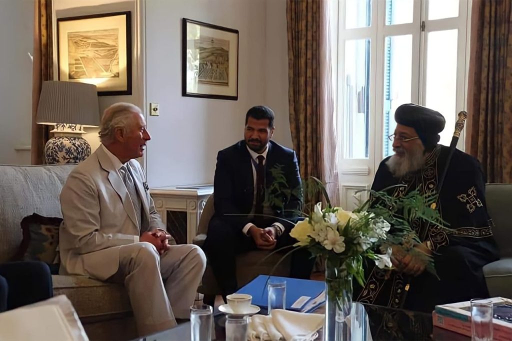في اليوم الأول، الأمير تشارلز التقى بالبابا تواضروس الثاني رئيس الكنيسة القبطية الأرثوذكسية في مصر، واتناقشوا في دور الدين في قضية المناخ، اللي بيهتم بيها الأمير بشكل خاص، كمان ناقشوا قضايا العنف ضد المرأة، وإزاي يتم معالجتها،