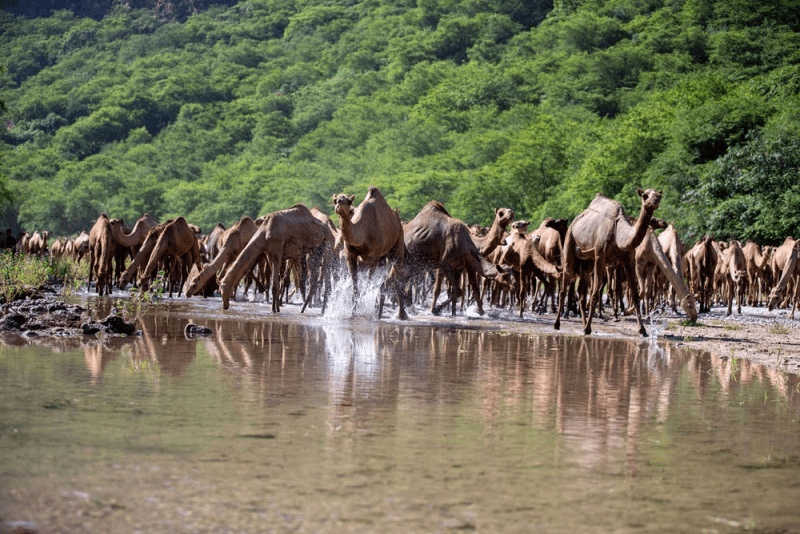 وترافق موسم الرعي الربيعي طقوس احتفالات شعبية متنوعة أثناء توجه ملاك الإبل مع ماشيتهم في جماعات إلى أماكن الرعي مرددين الأهازيج التراثية والأغاني التي تتميز بها منطقة ظفار.