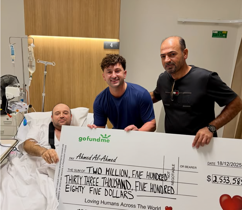 جمعها محبون من كافة أنحاء العالم. ومن ثم، تحولت شجاعته في نزع سلاح مهاجم بونداي إلى حملة تبرعات تاريخية، تقديراً لإنقاذه أرواحاً بريئة رغم إصابته برصاصتين غادرتين.