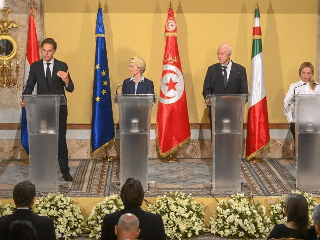 وبجانب ذلك، قالت رئيسة المفوضية الأوروبية إن التكتل سيخصص 100 مليون يورو (112.36 مليون دولار) لتونس في إطار اتفاق “شراكة استراتيجية” هدفها مكافحة الاتجار في البشر وتعزيز الاستثمار والتجارة وظبط الهجرة الغير نظامية.