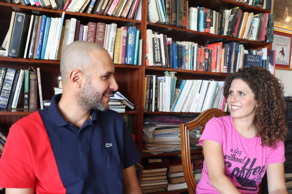 بعد الحديث عن السينما والأفلام، أردنا أن نقتحم حياتهم الشخصية،وأول سؤال كان طبيعي عن بداية تعارف دياب وزوجته ساره جوهر فقالت سارة “أنا أتولدت في نيويورك وعشت طول حياتي هناك، خليت ماما تبيع بيتنا ونييجي على هنا واتعرفت وقتها على عمرو سلامة بعد ما شوفت له فيلم وثائقي عن الإيدز، وفي مرة قابلته وشوفت دياب هناك ماكونتش أعرفه في الأول كنت فاكراه ممثل.”