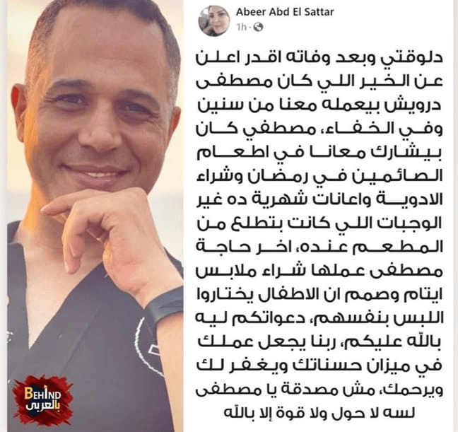 من أشخاص ظهرت لأول مرة وبدأت تتكلم عن أعمال الخير اللي كان بيعملها في الخفاء، وبين المواقف الإنسانية الكتير اللي جمعتهم، حتى مواقفه اللي فيها ضحك وهزار، وإنه قد إيه كان ممكن يدخل نفسه في مشاكل بسبب مبدأ وفكرة مؤمن بها.