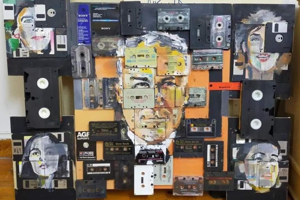 6000 شريط كاسيت، استخدمتهم سارة في رسم صور نجوم التسعينات، على الشرايط اللي شهدت فترة مجدهم الموسيقي والغنائي، من عمرو دياب وحميد الشاعري، لمحمد منير وسيمون، وكمان الفرق الموسيقية زيّ 4M لعزت أبو عوف وأخواته البنات مها ومنى ومنال وميرفت، وفرقة هاني شنودة، وغيرهم من الفنانين اللي كانوا أساس فترة التمانينات والتسعينات.