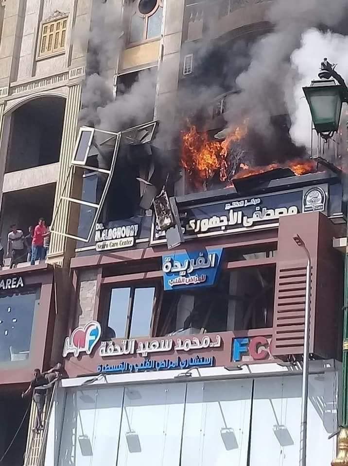 يقال إن بعض الشباب تعرضوا للإصابة ولكنهم أصروا على استمرار إنقاذ أرواح المتواجدين داخل العيادة والشقق المحترقة، وقدروا بالفعل إخراج السكان وإنقاذهم لحد وصول قوات الإطفاء وسط إعجاب وتشجيع الناس المحتشدة في الشارع. الحريق ده أدى لإصابة 13 شخص بحروق واختناقات وتم نقلهم للمستشفيات.