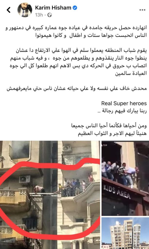 في ظل حدوث أى أزمة أو حادثة لا قدر الله، دايمًا بنلاقي في قلب الحدث حاجات أو مواقف بسيطة بترجع لنا إيماننا في الإنسانية والخير من تاني، ورغم صعوبة الأحداث دي وتأثرها سلبًا على مشاعرنا، إلا إن الجزء الإنساني منها بيقدر يسيب آثر طيب في قلوبنا.. امبارح نشب حريق كبير في عيادة طبيب بدمنهور، وانتشرت الصور بشكل كبير على مواقع التواصل الاجتماعي، مش كحدث إخباري، ولكن كحدث إنساني أبهر الناس وأثر فيهم.