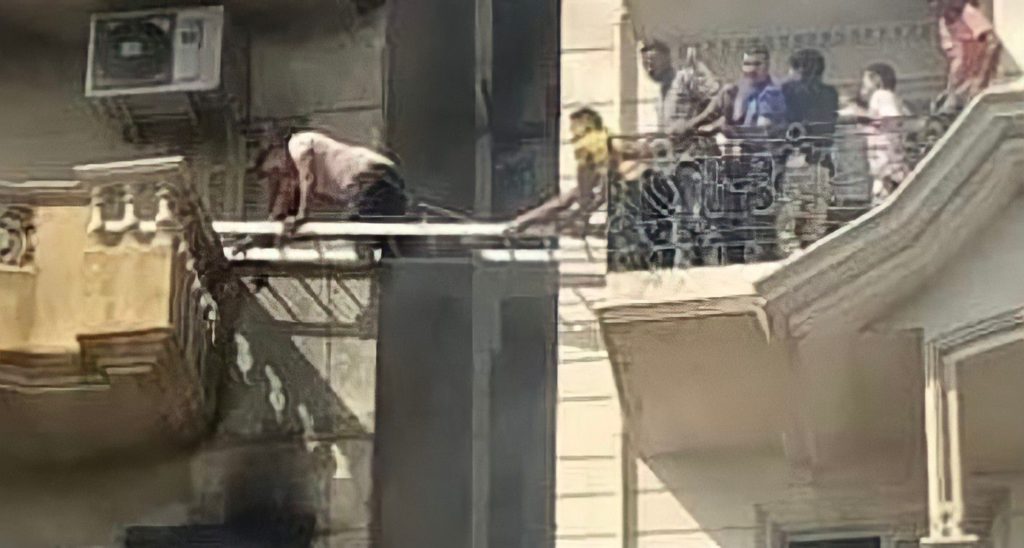 بدأت الحريقة بسبب انفجار ضخم لاسطوانة أكسجين، واللي تسبب في اندلاع الحريق بعيادة الطبيب المصري مصطفى الأجهوري، وانتقلت النار لـ4 شقق مجاورة، وده اللي خلى في احتمالية كبيرة إن يفقد البعض حياتهم بسبب الخنق أو الاحتراق، وعلشان كده بكل شجاعة اتجمعت أهالي المنطقة، ومن خلال البلكونات اللي في البناية المجاورة والمقابلة للبلكونات اللي فيها حريق، استخدموا الشباب سلم خشبي وقام أحد الشباب بتسلقه علشان ينقذ الناس، على الرغم من خطورة الموقف وتعرُض حياة الشاب ده للخطر نظرًا لتسلقه من دور عالي وتثبيت توازن السلم المعلق في الهوا من قبل الشباب المتواجدين معاه واللي أكيد مكانش آمن 100%
