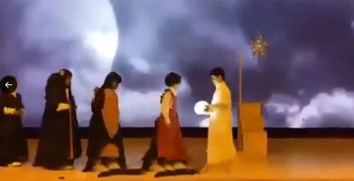 المشهد السابق، واللي انتشر على منصات التواصل الاجتماعي، هو من مسرحية أطفال اسمها “أفق”، وتم تنظيمها في واحدة من مدارس منطقة القصيم التعليمية، وتسائل مستخدمي منصات التواصل الاجتماعي عن نوع الرسالة اللي بيحاول يوصلها للجمهور من خلال الأطفال الصغار.