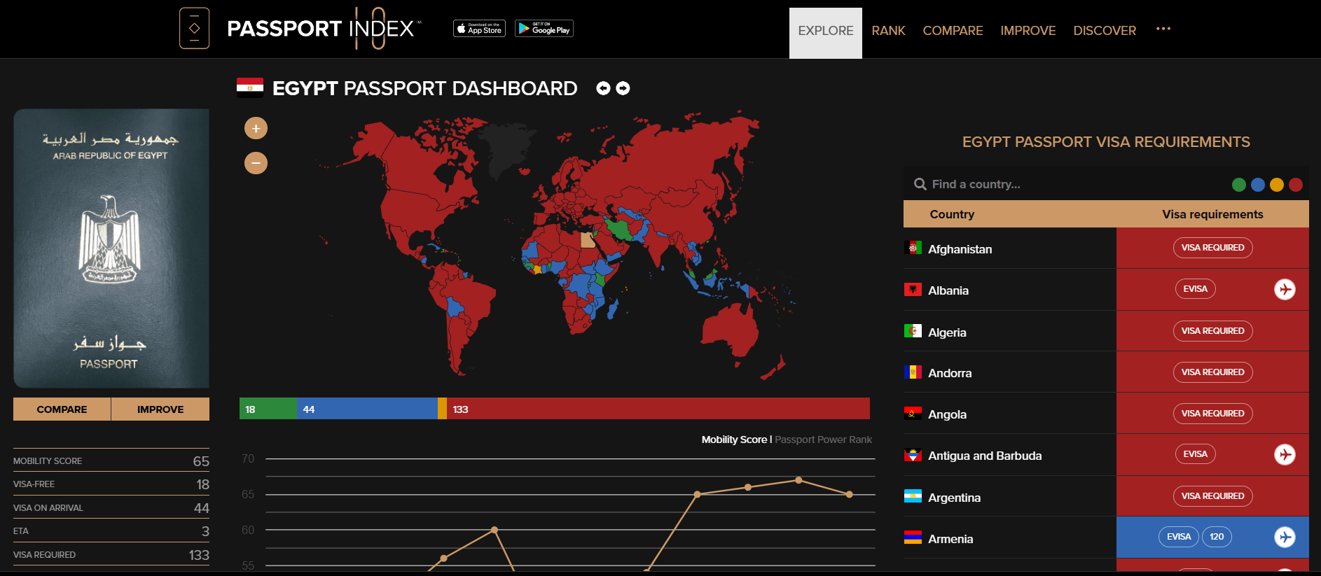 علاوة على ذلك، جواز السفر المصري يمكنه منحك الفرصة للسفر إلى 133 دولة تتطلب تأشيرة مسبقة قبل السفر.