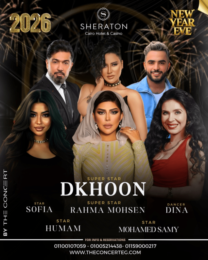 تنطلق السهرة في تمام الساعة 08:00 مساء يوم الأربعاء 31 ديسمبر 2025 بمسرح “Theatro Arkan” الموجود في أركان بلازا بقلب مدينة الشيخ زايد.