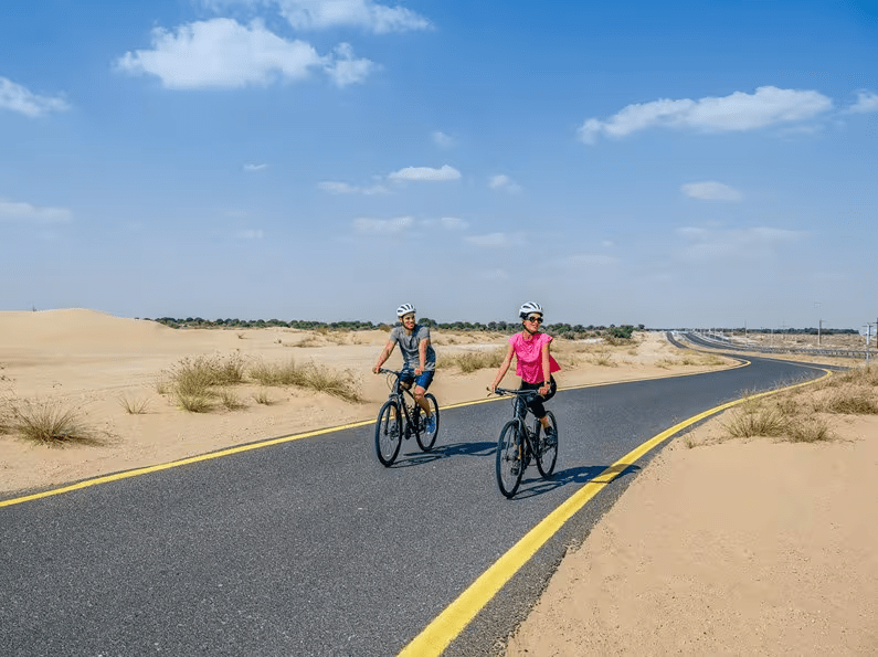 ابدأوا يومكم عند الساعة 6 صباحاً في جولة تمتد لمسافة 86 كلم وسط المناظر الصحراوية الخلابة. واستمتعوا بشروق الشمس ومشاهدة المها العربي على مسارٍ مصمم لعشاق اللياقة والتحمل والمغامرة.