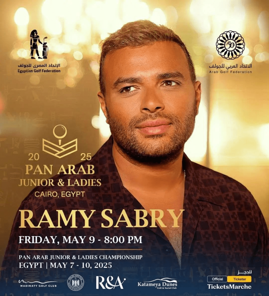 في يوم الجمعة 9 مايو، يحيي الفنان رامي صبري حفلاً خاصًا في نادي مدينتي للجولف، وذلك ضمن فعاليات البطولة العربية للجولف التي تُقام في القاهرة من 7 إلى 10 مايو.