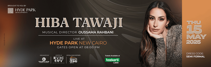 الفنانة اللبنانية المبدعة هبة طوجي تُحيي حفلة ساحرة في هايد بارك بالتجمع الخامس يوم 15 مايو، مع الموسيقار الكبير أسامة الرحباني.
