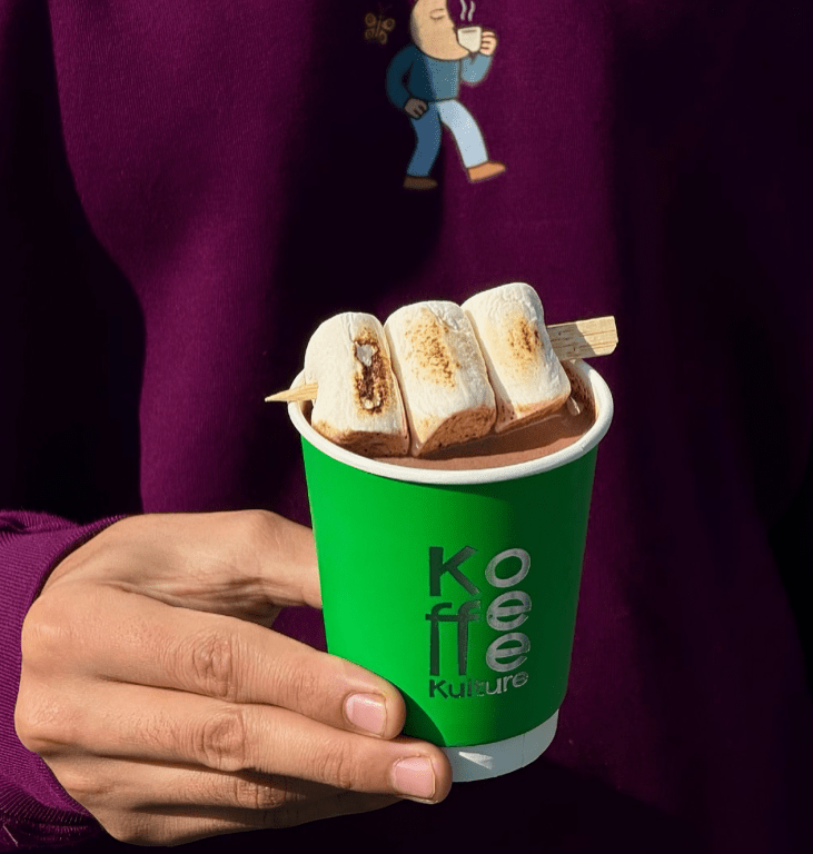 يقدم Koffee Kulture مشروب Hot Choko البلجيكي، فيُحضّر بشوكولاتة نقية، ويُقدَم مع أعواد خشبية وثلاث مارشميلوز للشواء.