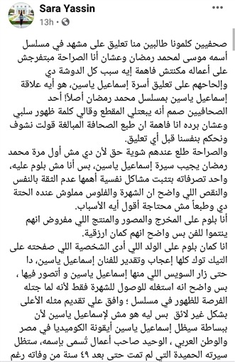 وحفيدة الفنان إسماعيل ياسين علقت على الموضوع.