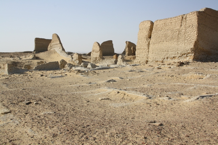 الطريق ده بيوصل لشاطئ البحيرة، وبتتميز المنطقة بآثار متنوعة، زي معبد صغير من الحجر المربع، و أسوار حوائط المدينة المكونة من الطوب اللبن بارتفاع حوالي 10 أمتار، و سُمك 5 أمتار. وكانت الجزيرة مشهورة باسم “الأسود الرابضة” نسبةً لتمثالين علي هيئة أسد رابض بيعودوا للعصر البطلمي، والتمثالين دول منحوتين من الحجر الرملي خارج معبد الإله سكنوبايوس، وُمحاطين برديم أحد أجزاء المعبد.