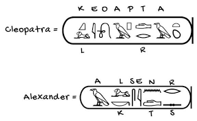 من خلال معرفته باللغة القبطية قدر شامبليون يحقق الإنجاز الأعظم في تاريخ علم المصريات. اشتغل عالم اللغويات الفرنسي على خرطوشة بطليموس وخرطوشة تانية حديثة الاكتشاف، كان يُعتقد إنها لكليوباترا، وقارن ما بين الرموز والصوتيات المشتركة ما بينهم، ومن خلال البحث ده قدر يكشف المقابل الصوتي لعشر رموز هيروغليفية.