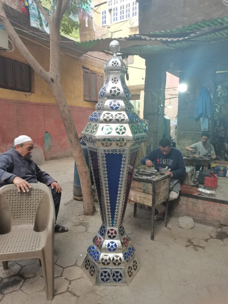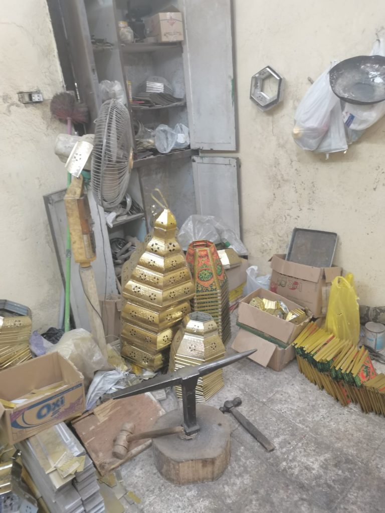 ورشة أم إبراهيم ورثتها العيلة جيل ورا جيل، وبيأكد طاهر إن تصنيع الفوانيس بيبدأ قبل الشهر الكريم بشهرين على الأقل، وبيقول: “الشغلانة موسمية، وبنعمل كميات كبيرة من الفوانيس، بنبدأ بتصنيع كل جزء من الفانوس لوحده بكميات كبيرة، وبعدها بنلحم الأجزاء اللي صنعناها مع بعض”.