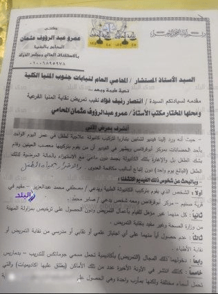 انتصار رئيف، نقيب تمريض المنيا، أكدت صحة الواقعة واتقدمت بمذكرة لمحافظ المنيا ووكيل وزارة الصحة ومذكرة للمحامي العام لنيابات جنوب المنيا، وطالبت بتحقيق عاجل.